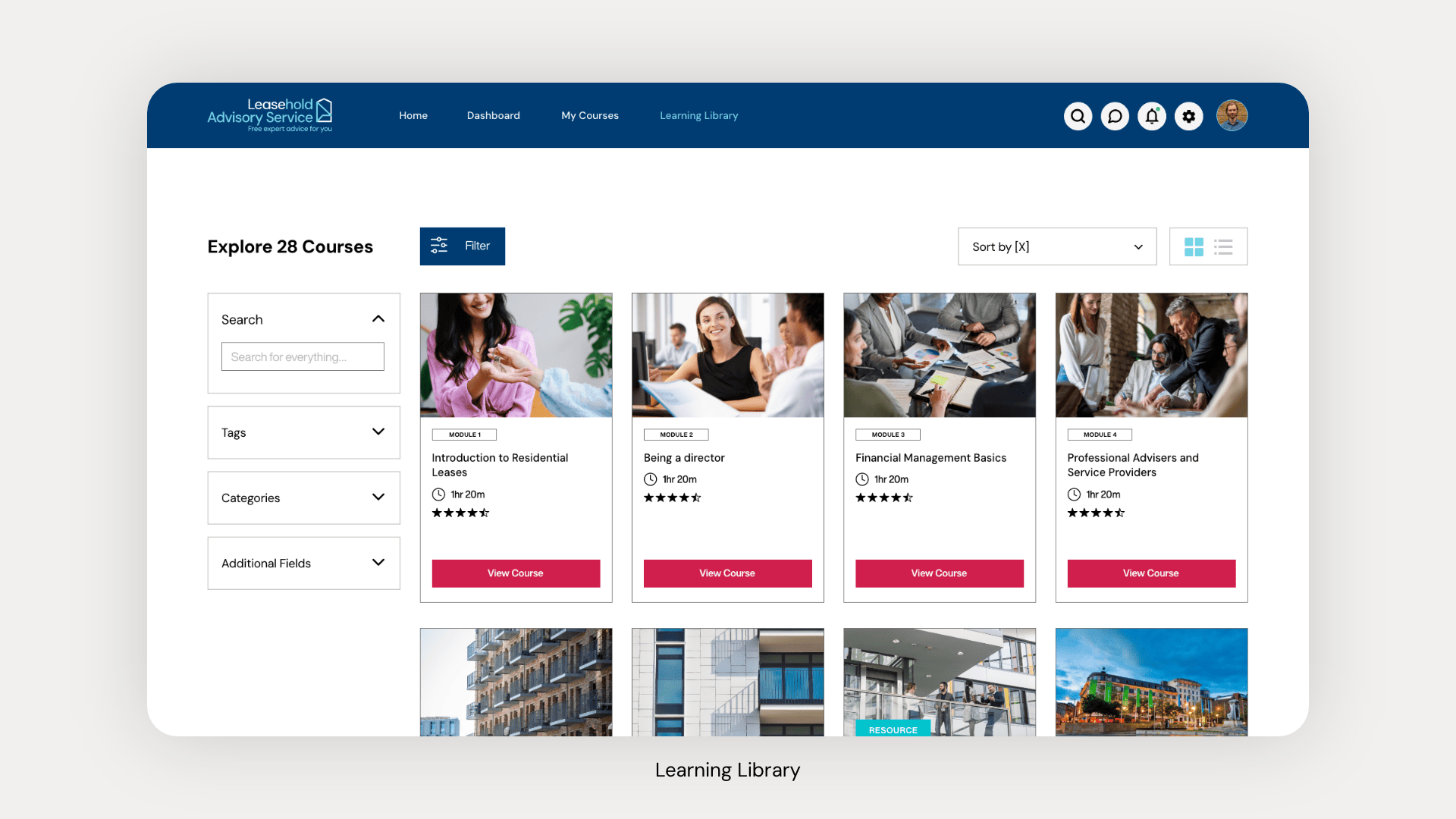 Custom Learning Tabs: Allow users to personalise their view with dynamic Learning Tabs that display filtered categories such as Recommended, New Releases, or Bookmarked courses.